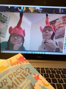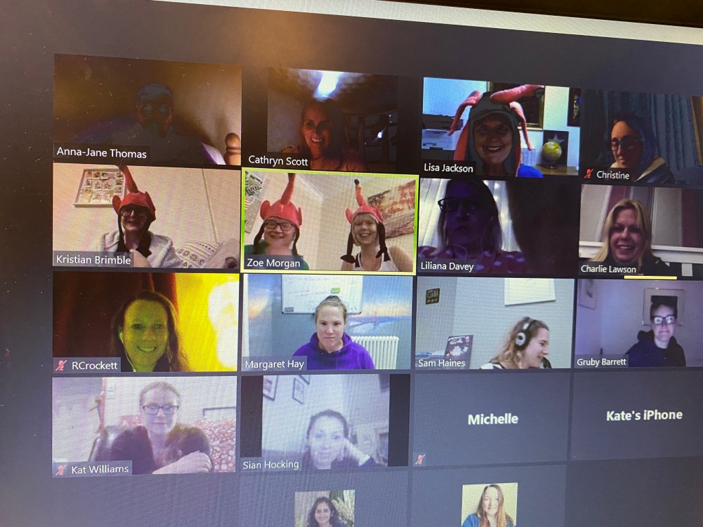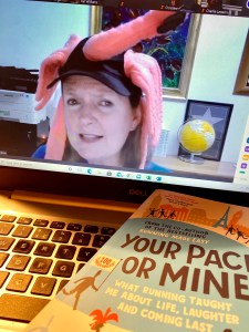 An energetic and enthusiastic Lisa joins us over Zoom. She’s wearing the flamingo hat she talks about so much in the book, and is delighted to see three of our members wearing their own flamingo hats in tribute to her. “I love your running group!” she tells us. “If I lived in Cardiff I’d definitely join and come running with you.”