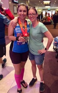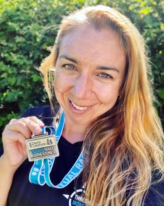 Just one week later, on a rather chilly and overcast day Tanya and I lined up for the Newport Marathon. What a completely different experience. No sunshine or huge crowds but my running buddy with me for every step. We both had periods of wanting to walk but we kept each other going. Our families rushed around and appeared to cheer us in the middle and at the end! If I’d been alone I would’ve happily walked the last 3 miles but Tanya wasn’t going to let me give up. “If we keep going we can get that sub 5 hours.” We did, we crossed the line in 4’50”. What a high!