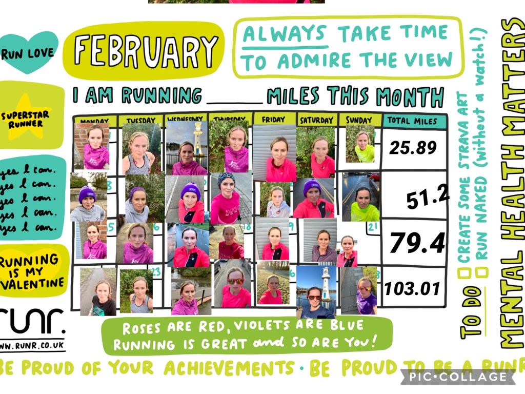 The RED January challenge helped kick start things, even though when I initially signed up I was planning on it being ‘regular exercise daily’ rather than ‘run every day’. When I got to the end of the month, I wasn’t ready to let go of the run streak… and so I continued for February. As I’d also run on New Year’s Eve, this meant 60 consecutive days of running.