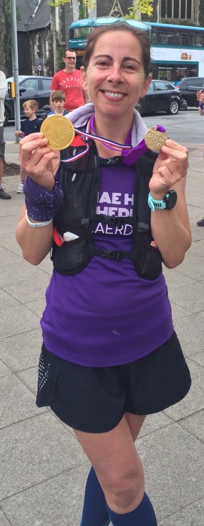 I think the hardest thing was the heat as with typical Welsh weather none of the training runs had been done in the heat. Having support out along the route with cold water, ice lollies and sun screen really helped – ice cold water never tasted so good! (and a note for anyone running in heat – don’t forget to put sun tan lotion on the back of your knees!!).